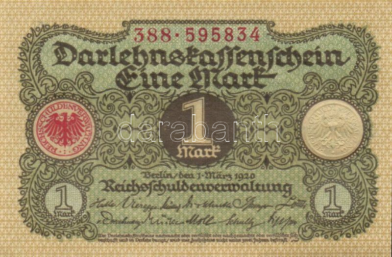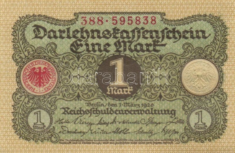 Leírás: Német Birodalom / Weimari Köztársaság 1920. 1M (5x) egymás utáni sorszámokkal T:I