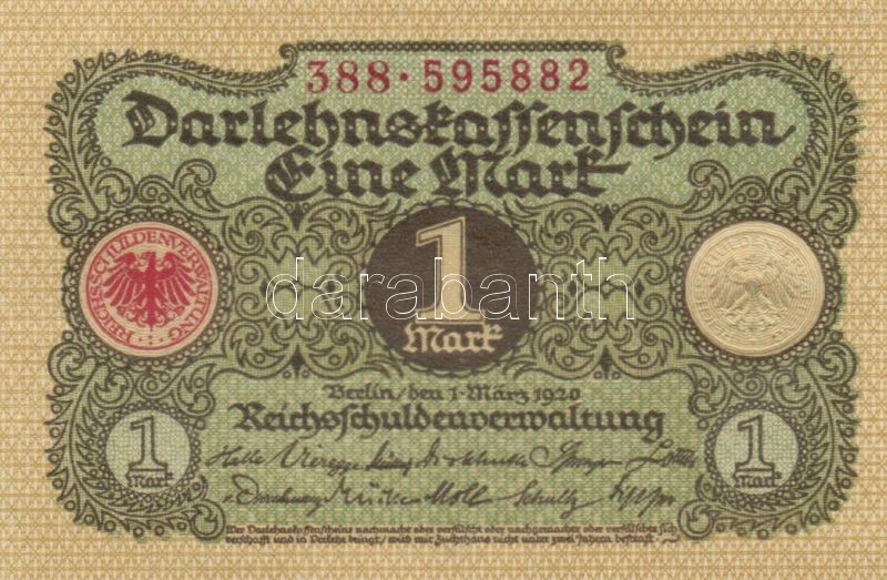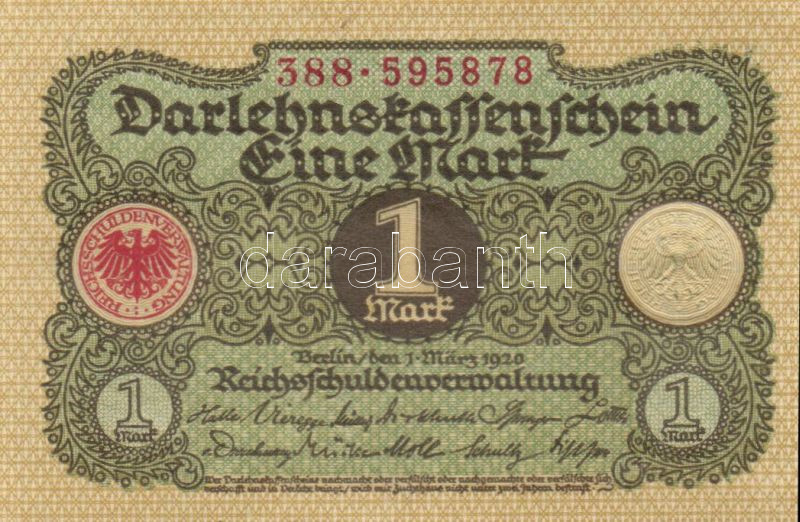 Leírás: Német Birodalom / Weimari Köztársaság 1920. 1M (5x) egymás utáni sorszámokkal T:I