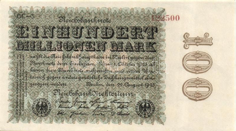 Német Birodalom / Weimari Köztársaság 1923. 100.000.000M céges nyomat ... https://www.darabanth.com/hu/120-Gyorsarveres/120.0/Numizmatika/Nemet-BirodalomCsaszarsagWeimari-KoztarsasagNemet-AllamokNSZKNDKmellekteruletekgya~30253/Nemet-Birodalom-Weimari-Koztarsasag-1923-100000000M-ceges-nyomat-Sterne-mit-einem-S-darin~II310255