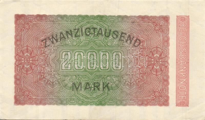 Leírás: Német Birodalom / Weimari Köztársaság 1923. 20.000M (2x) variáns "Hakensterne" vízjellel, hatjegyű sorszámmal T:I-
