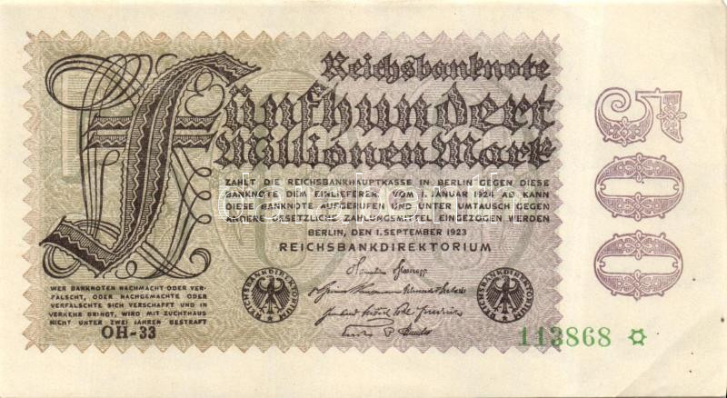 Német Birodalom / Weimari Köztársaság 1923. 500.000.000M (2x) céges nyomat "Sterne mit einem S darin" vízjellel, közeli sorszámokkal T:I- (enyhe sarokhajlás)