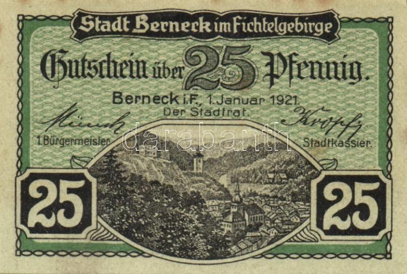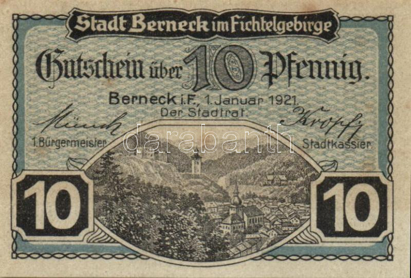 Leírás: Német Birodalom / Weimari Köztársaság / Berneck 1921. 10Pf + 25Pf + 50Pf 3 klf db, teljes sor T:I