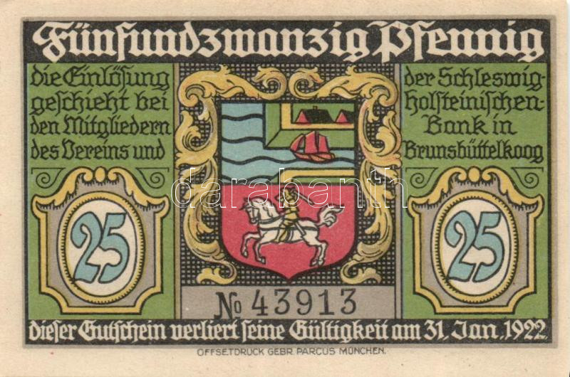 Leírás: Német Birodalom / Weimari Köztársaság / Brunsbüttelkoog 1922. 25Pf + 50Pf + 75Pf + 1M 4 klf db, teljes sor T:I