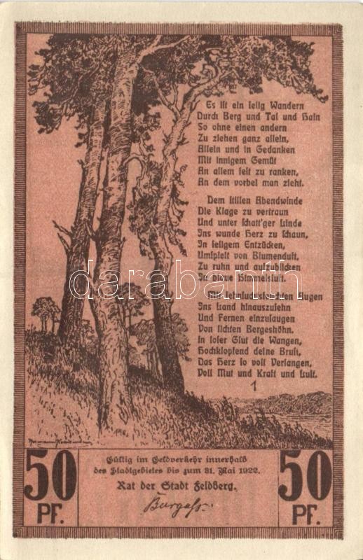 Leírás: Német Birodalom / Weimari Köztársaság / Feldberg DN 10Pf + 25Pf + 50Pf 3 klf db, teljes sor T:I,I-
