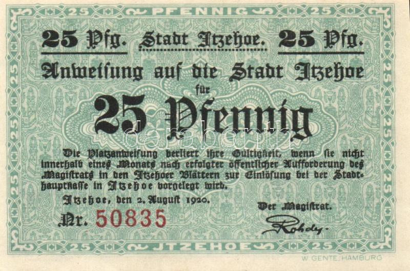 Leírás: Német Birodalom / Weimari Köztársaság / Itzehoe 1920. 25Pf + 50Pf + 1M 3 klf db, teljes sor T:I