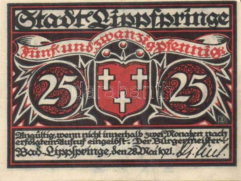 Német Birodalom / Weimari Köztársaság / Lippspringe 1921. 25Pf + 50Pf ... https://www.darabanth.com/hu/120-Gyorsarveres/120.0/Numizmatika/Nemet-BirodalomCsaszarsagWeimari-KoztarsasagNemet-AllamokNSZKNDKmellekteruletekgya~30253/Nemet-Birodalom-Weimari-Koztarsasag-Lippspringe-1921-25Pf-plus-50Pf-plus-75Pf-3-klf-db-teljes-so~II321411