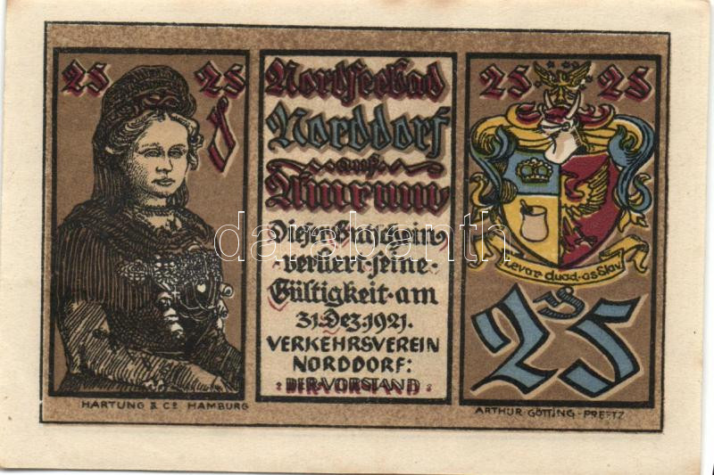 Leírás: Német Birodalom / Weimari Köztársaság / Norddorf 1921. 25Pf + 50Pf + 75Pf + 1M 4 klf db, teljes sor T:I