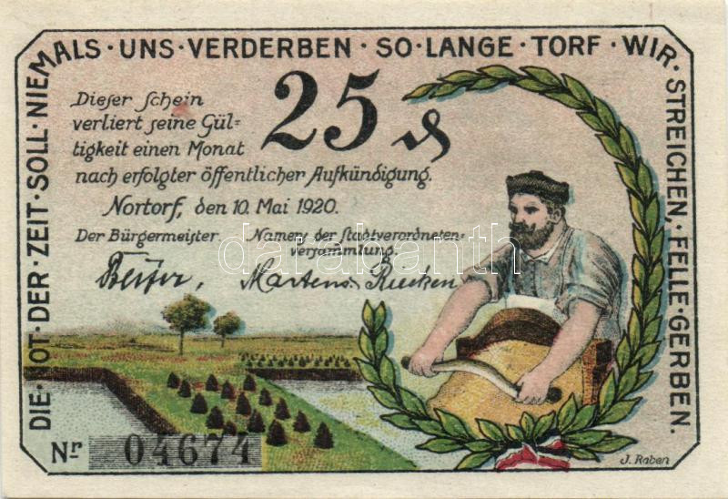 Leírás: Német Birodalom / Weimari Köztársaság / Nortorf 1920. 25Pf + 50Pf + 75Pf 3 klf db, teljes sor T:I