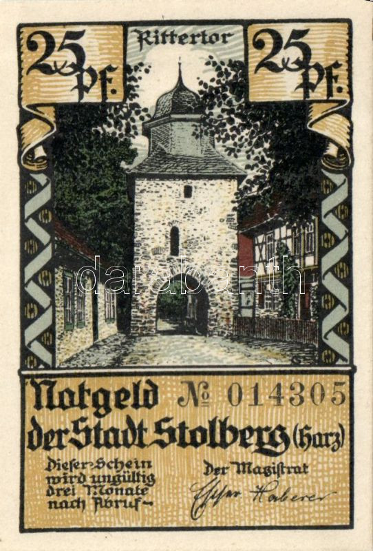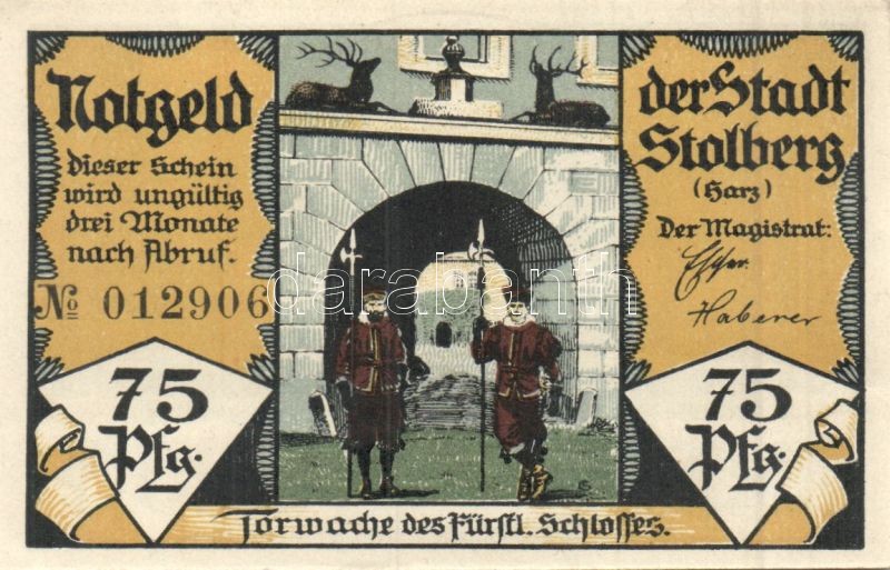 Leírás: Német Birodalom / Weimari Köztársaság / Stolberg DN 25Pf + 50Pf + 75Pf 3 klf db, teljes sor T:I