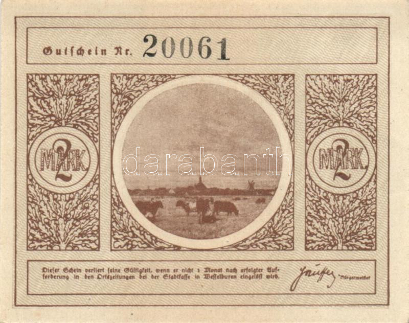 Leírás: Német Birodalom / Weimari Köztársaság / Wesselburen DN 50Pf + 1M + 2M 3 klf db, teljes sor T:I