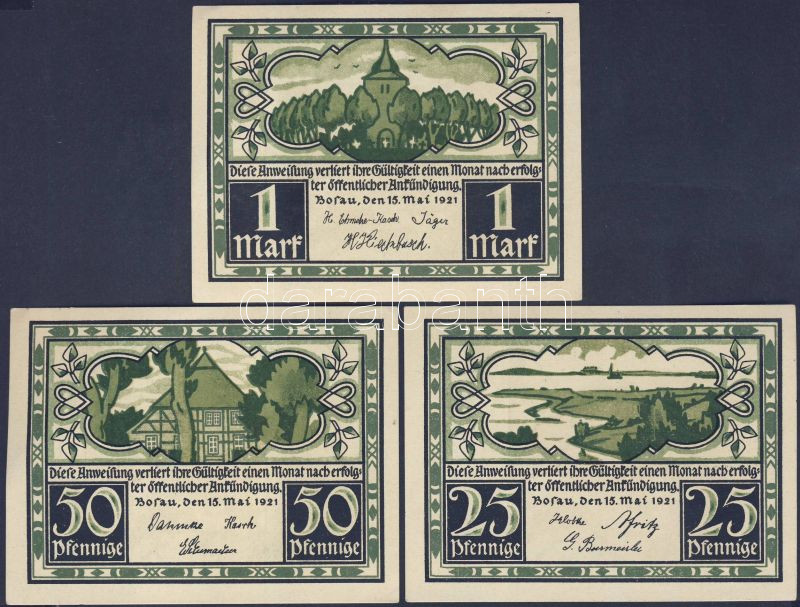 Leírás: Német Birodalom/Weimari Köztársaság/Bosau 1921. 25Pf+50Pf+1M 3klf db, teljes sor T:I
