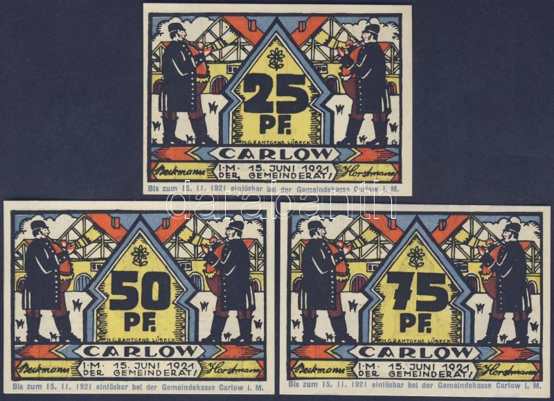 Leírás: Német Birodalom/Weimari Köztársaság/Carlow 1921. 25Pf+50Pf+75Pf 3klf db, teljes sor T:I