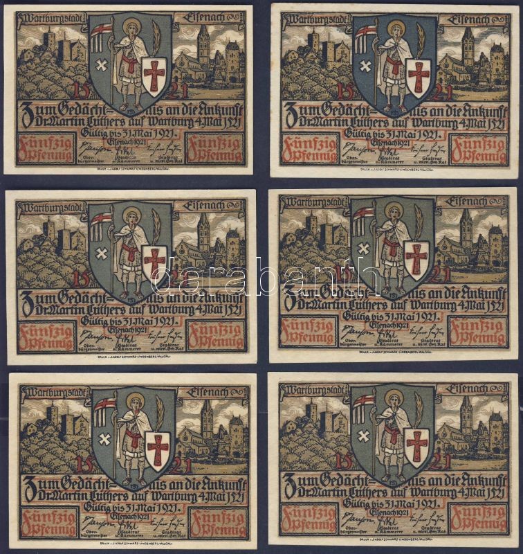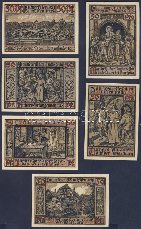 Leírás: Német Birodalom/Weimari Köztársaság/Eisenach 1921. 50Pf(6x) 6klf db, teljes sor T:I