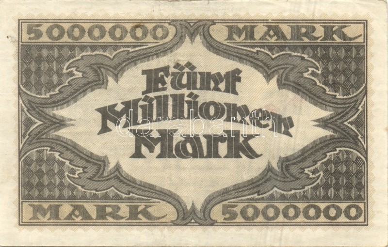 Leírás: Német Birodalom/Weimari Köztársaság/Hamburg/Hugo Stinnes Linien 1923.8.18. 5000.000M piros sorszámmal T:II