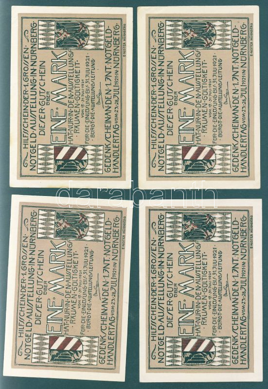 Leírás: Német Birodalom/Weimari Köztársaság/Nürnberg 1921. 1M (4x) mind klf, komplett sor! T:I,I-