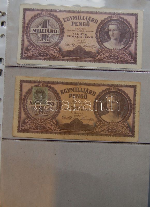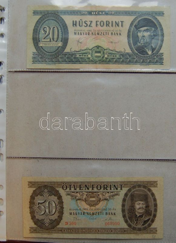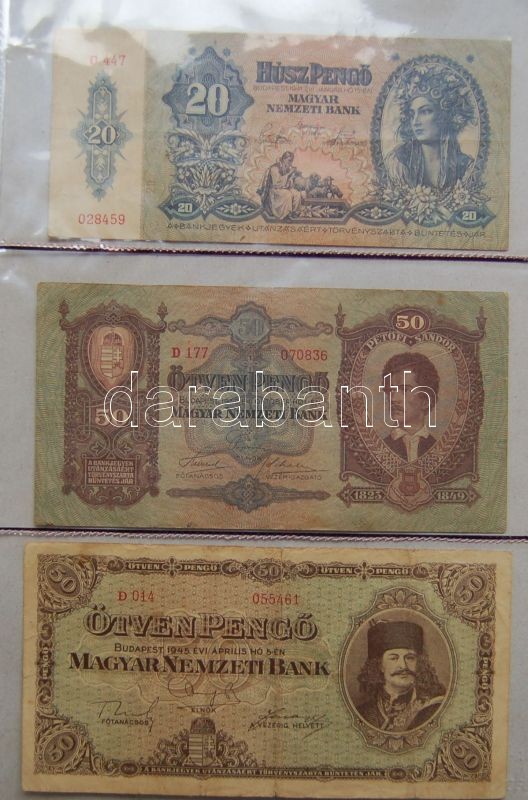 Leírás: Kis hagyaték bankjegy tétel albumban, pengő-, forint-korszak, összesen 59db T:vegyes