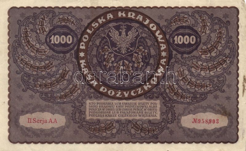 Lengyelország 1919.8.23. 1000M (6x) klf szériaszám variánsokkal T:II https://www.darabanth.com/hu/126-Gyorsarveres/126.0/Numizmatika/Kulfoldi-bankjegyek-Foreign-banknotes~3000163/Lengyelorszag-1919823-1000M-6x-klf-szeriaszam-variansokkal-TII~II341946