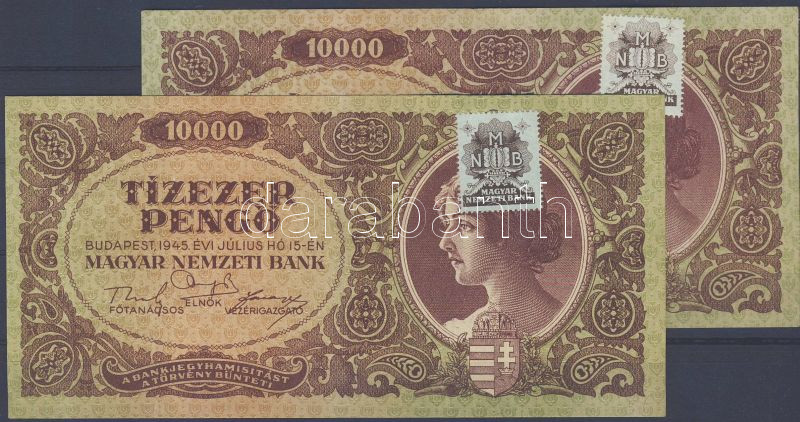 1945. 10.000P (2x) színeltérések, barna bélyeg T:I https://www.darabanth.com/hu/127-Gyorsarveres/127.0/Numizmatika/Osztrakmagyar-bankjegyek-magyar-es-magyar-vonatkozasu-bankjegyek-Hungarian-Austro-hungarian~500183/1945-10000P-2x-szinelteresek-barna-belyeg-TI~II354379