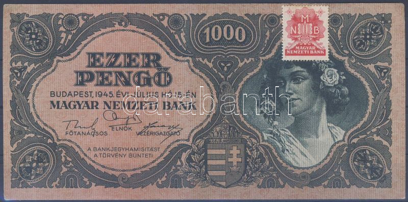 1945. 1000P piros bélyeg T:I https://www.darabanth.com/hu/127-Gyorsarveres/127.0/Numizmatika/Osztrakmagyar-bankjegyek-magyar-es-magyar-vonatkozasu-bankjegyek-Hungarian-Austro-hungarian~500183/1945-1000P-piros-belyeg-TI~II354374