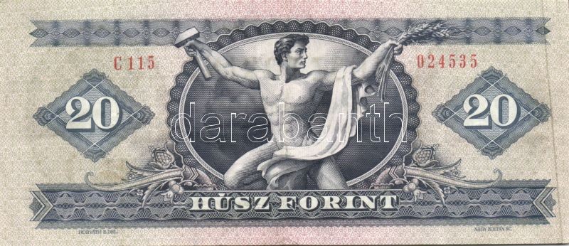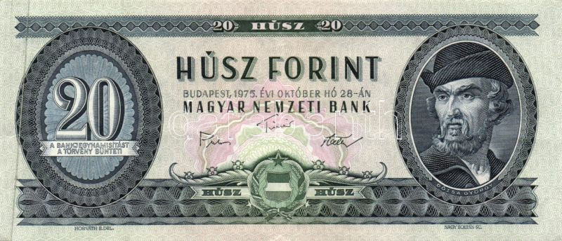 Leírás: 1975. 20Ft Az előlap baloldalán fentről végig húzódó papírtörés. T:II+