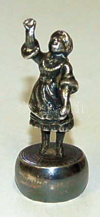 Leírás: Álló leánykával díszített, régi, fém dugódísz