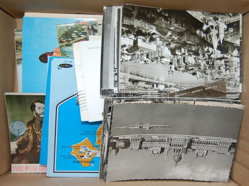 Leírás: 97 db modern fekete-fehér magyar és külföldi lap + 20 leporello és képeslapfüzet / 97 Modern town-view cards + 20 leporello