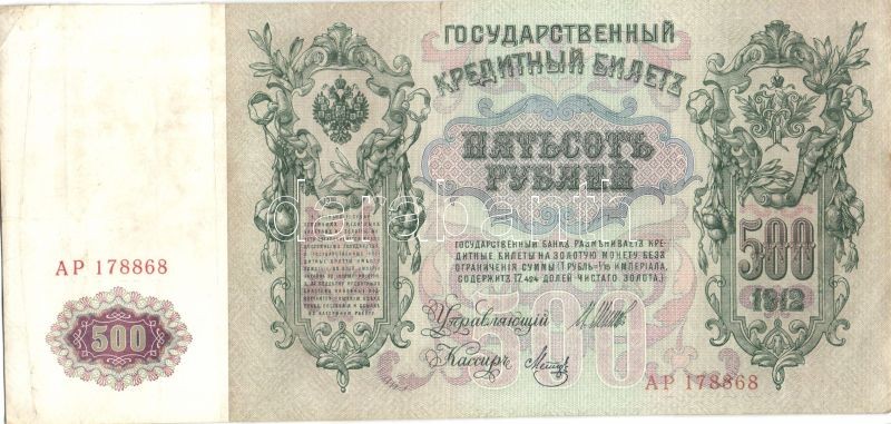 Oroszország 1912. 500R (5x) T:III https://www.darabanth.com/hu/128-Gyorsarveres/128.0/Numizmatika/Kulfoldi-bankjegyek-Foreign-banknotes~300194/Oroszorszag-1912-500R-5x-TIII~II362516