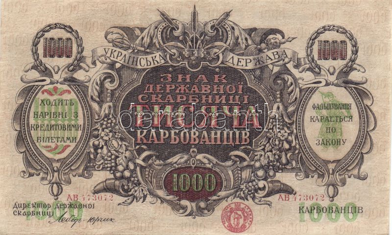 Leírás: Ukrajna 1918. 1000K ferde vágási hibával T:I-