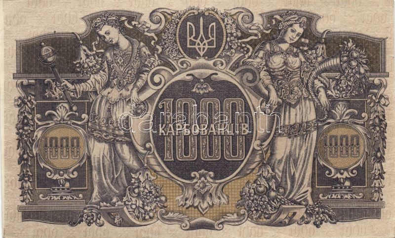 Ukrajna 1918. 1000K ferde vágási hibával T:I- https://www.darabanth.com/hu/128-Gyorsarveres/128.0/Numizmatika/Kulfoldi-bankjegyek-Foreign-banknotes~300194/Ukrajna-1918-1000K-ferde-vagasi-hibaval-TI-~II362054