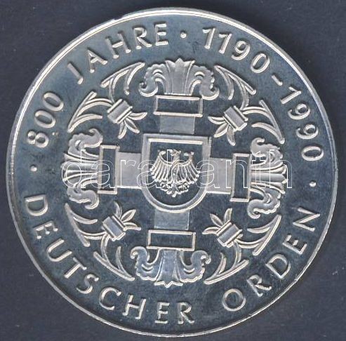 Németország 1990. "800 éves a Német Rend" ffém emlékérem T:PP / 22,5g https://www.darabanth.com/hu/128-Gyorsarveres/128.0/Numizmatika/Kulfoldi-emlekveretek-plakettek-kituntetesek-Foreign-commemorative-medals-plaques-jewels~300198/Nemetorszag-1990-800-eves-a-Nemet-Rend-ffem-emlekerem-TPP-22-5g~II362461