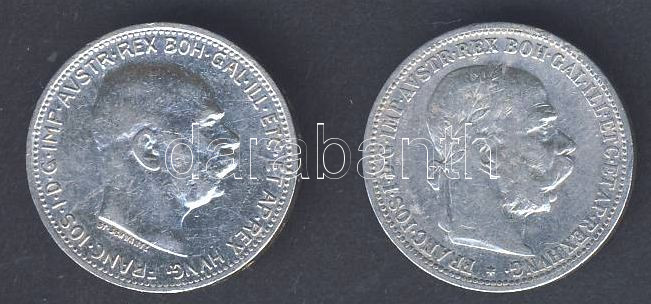 Leírás: Ausztria 1893. 1K + 1914. 1K "Ferenc József" Ag T:2-/3