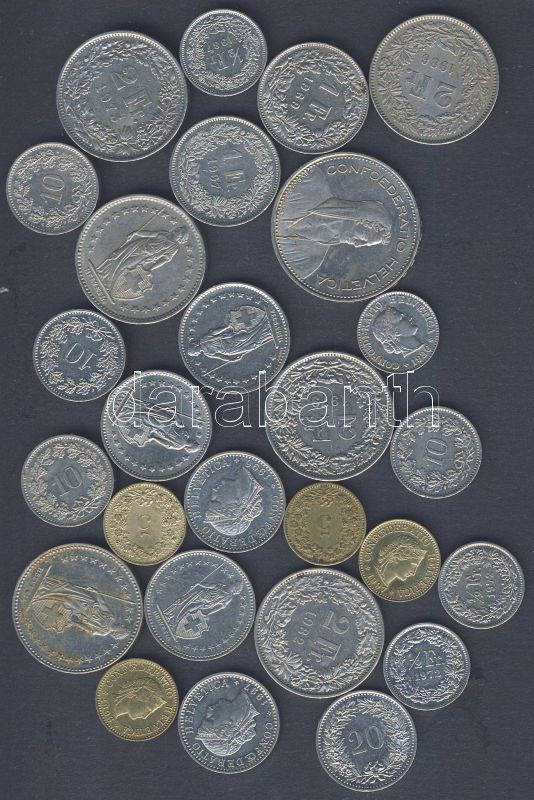Leírás: Svájc 1936-1997. 5R (5x), 10R (4x), 20R (3x), 1/2Fr (3x), 1Fr (5x), 2Fr (6x), 5Fr T:2/3+