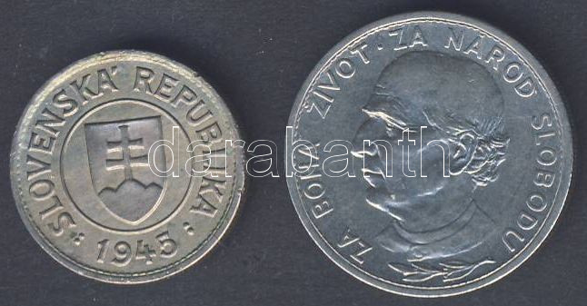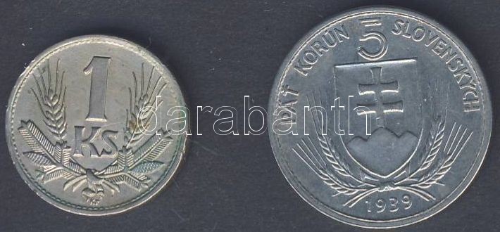 Szlovákia 1939. 5K + 1945. 1K T:2 https://www.darabanth.com/hu/128-Gyorsarveres/128.0/Numizmatika/Kulfoldi-fem-es-ezustpenzek-a-kozepkortol-napjainkig-Foreign-metal-and-silver-coins~300203/Szlovakia-1939-5K-plus-1945-1K-T2~II359053