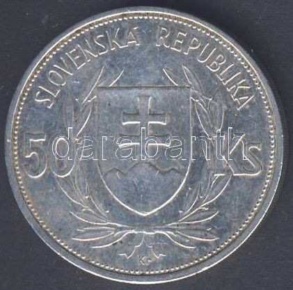 Leírás: Szlovákia 1944. 50K Ag "5. Függetlenségi évforduló" T:2