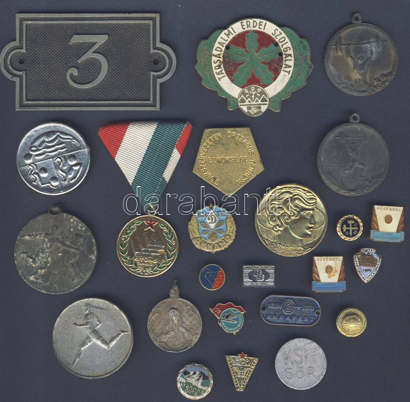 vegyes tétel 23db jelvény, bárca, sportérem és egyéb T:2,3,4 https://www.darabanth.com/hu/128-Gyorsarveres/128.0/Numizmatika/Magyar-emlekveretek-plakettek-kituntetesek-Hungarian-commemorative-medals-plaques-jewels~300200/vegyes-tetel-23db-jelveny-barca-sporterem-es-egyeb-T2-3-4~II360401
