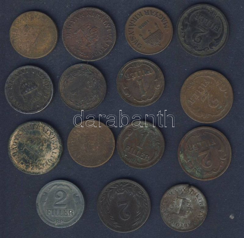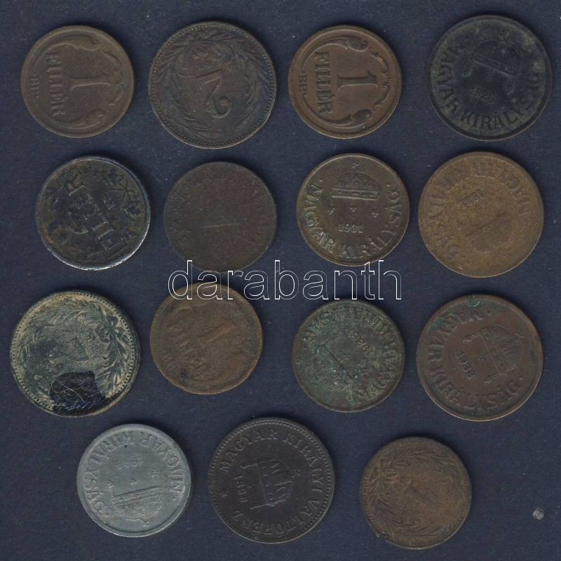 1896-1938. 15db 1f, 2f T:vegyes https://www.darabanth.com/hu/128-Gyorsarveres/128.0/Numizmatika/Magyar-fem-es-ezustpenzek-a-kozepkortol-napjainkig-Hungarian-metal-and-silver-coins~300204/1896-1938-15db-1f-2f-Tvegyes~II358887