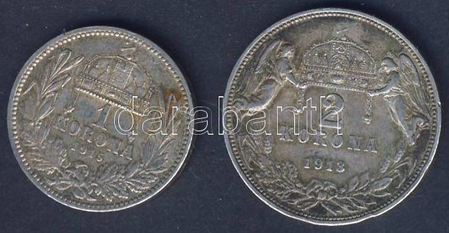 Leírás: 1913. 2K Ag T:3+ , 1915. 1K "Ferenc József" Ag T:2/3+