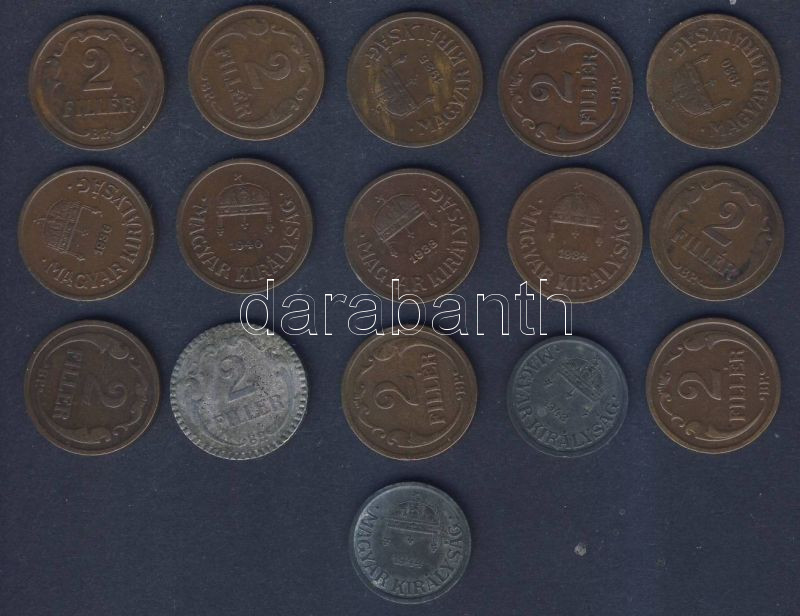 1926-1944. 2f (16x) T:1,2,3 https://www.darabanth.com/hu/128-Gyorsarveres/128.0/Numizmatika/Magyar-fem-es-ezustpenzek-a-kozepkortol-napjainkig-Hungarian-metal-and-silver-coins~300204/1926-1944-2f-16x-T1-2-3~II358665