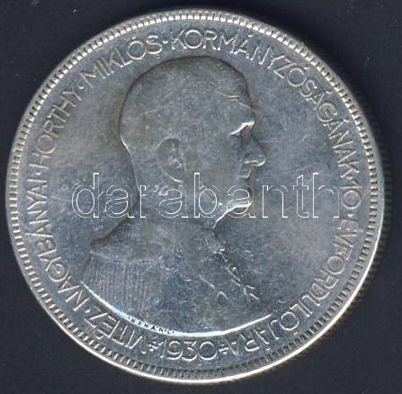 Leírás: 1930. 5P Ag "Horthy jobbra" T:3