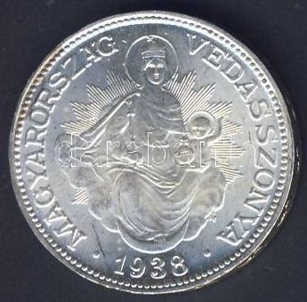 1938. 2P Ag "Madonna" T:2+ kis k. https://www.darabanth.com/hu/128-Gyorsarveres/128.0/Numizmatika/Magyar-fem-es-ezustpenzek-a-kozepkortol-napjainkig-Hungarian-metal-and-silver-coins~300204/1938-2P-Ag-Madonna-T2plus-kis-k~II362641
