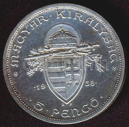 1938. 5P "Szent István" ezüst T:2+ https://www.darabanth.com/hu/128-Gyorsarveres/128.0/Numizmatika/Magyar-fem-es-ezustpenzek-a-kozepkortol-napjainkig-Hungarian-metal-and-silver-coins~300204/1938-5P-Szent-Istvan-ezust-T2plus~II340254