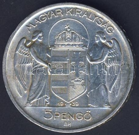 1939. 5P Ag "Horthy balra" T:2 apró ph. https://www.darabanth.com/hu/128-Gyorsarveres/128.0/Numizmatika/Magyar-fem-es-ezustpenzek-a-kozepkortol-napjainkig-Hungarian-metal-and-silver-coins~300204/1939-5P-Ag-Horthy-balra-T2-apro-ph~II340220