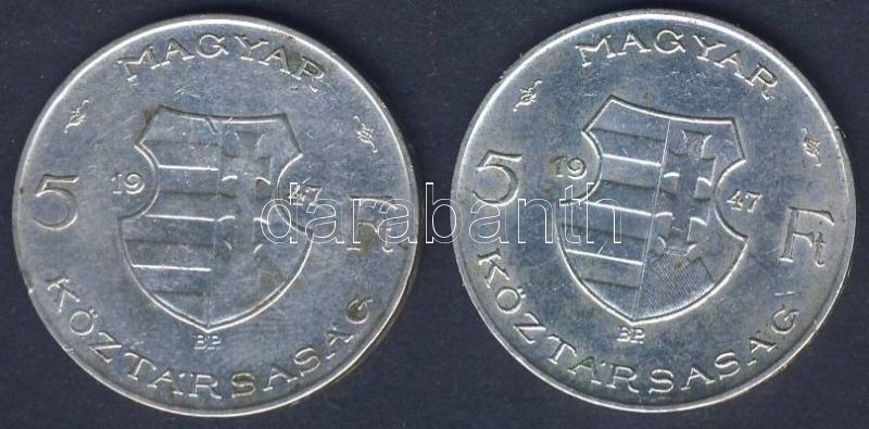 Leírás: 1947. 5Ft Ag "Kossuth" (2x) T:2 kis ph.