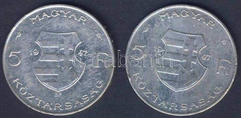 Leírás: 1947. 5Ft Ag "Kossuth" (2x) T:2 kis ph.