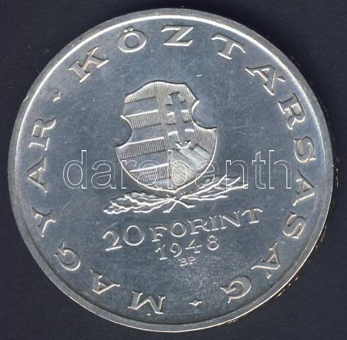 1948. 20Ft Ag "Táncsics" T:2- kis ph. https://www.darabanth.com/hu/128-Gyorsarveres/128.0/Numizmatika/Magyar-fem-es-ezustpenzek-a-kozepkortol-napjainkig-Hungarian-metal-and-silver-coins~300204/1948-20Ft-Ag-Tancsics-T2-kis-ph~II356521
