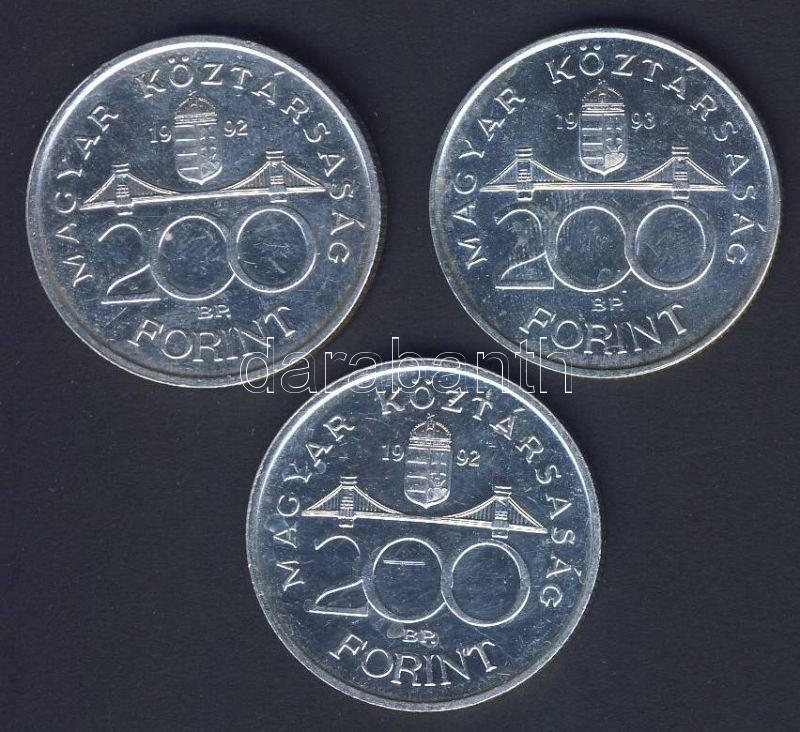 1992-1993. 200Ft "MNB" Ag T:2 https://www.darabanth.com/hu/128-Gyorsarveres/128.0/Numizmatika/Magyar-fem-es-ezustpenzek-a-kozepkortol-napjainkig-Hungarian-metal-and-silver-coins~300204/1992-1993-200Ft-MNB-Ag-T2~II362356