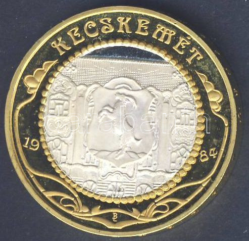 Leírás: 1984. Kecskemét Állami Pénzverő Ag emlékérem aranyozott széllel T:PP / 30,3g