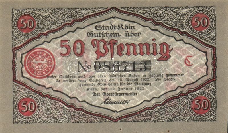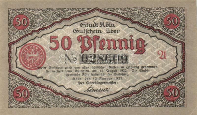 Német Birodalom / Weimari Köztársaság / Köln 1922. 50Pf (3x) 3 klf db ... https://www.darabanth.com/hu/128-Gyorsarveres/128.0/Numizmatika/Nemetorszag-es-tortenelmi-idoszakai-Germany-and-its-historical-periods~300193/Nemet-Birodalom-Weimari-Koztarsasag-Koln-1922-50Pf-3x-3-klf-db-teljes-sor-plus-Schwaan-1922~II362894