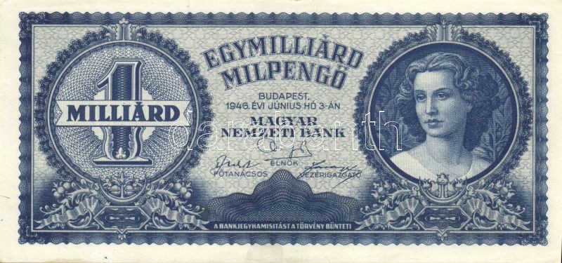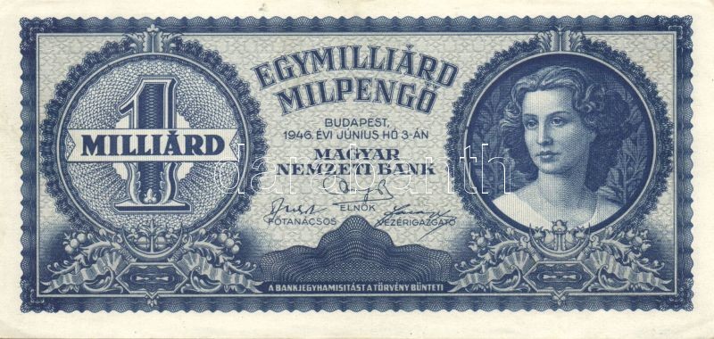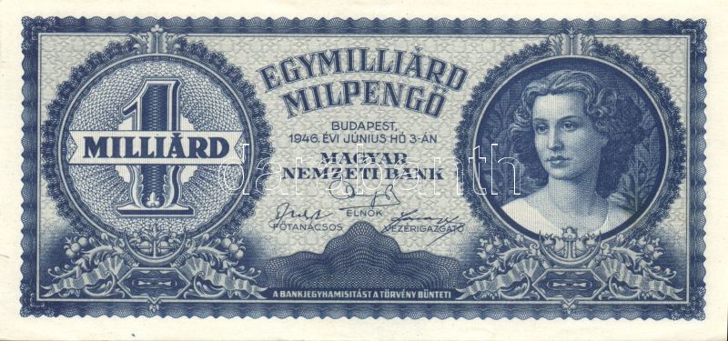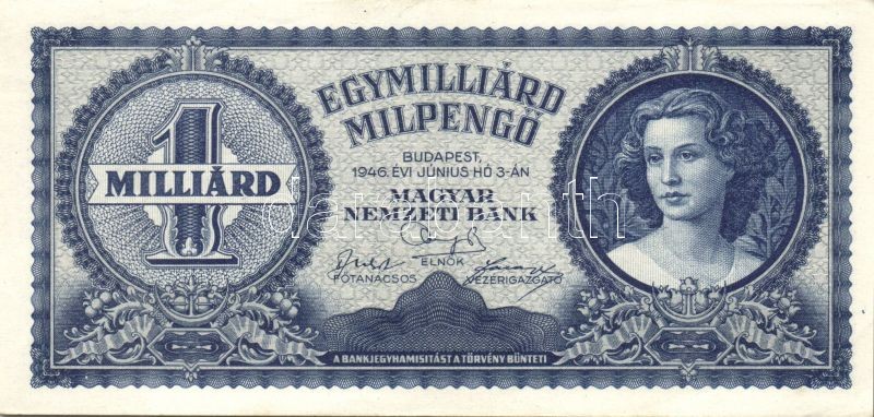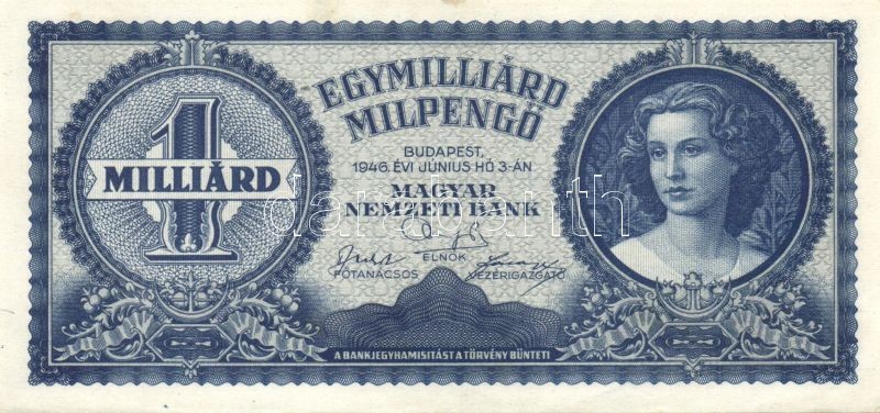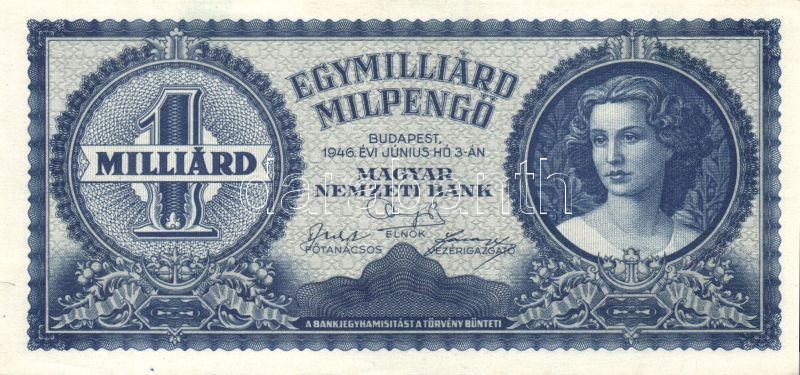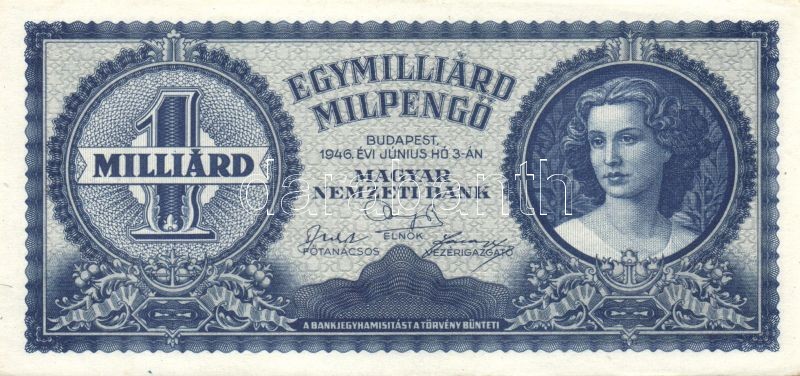 1946. 1.000.000.000MP (10x) T:I/I- https://www.darabanth.com/hu/128-Gyorsarveres/128.0/Numizmatika/OsztrakMagyar-bankjegyek-Hungarian-Austro-Hungarian-banknotes~300207/1946-1000000000MP-10x-TII-~II360428