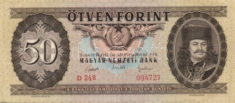 Leírás: 1951. 50Ft + 1962. 10Ft (fordított hátlapi alapnyomat "01") T:II,III+